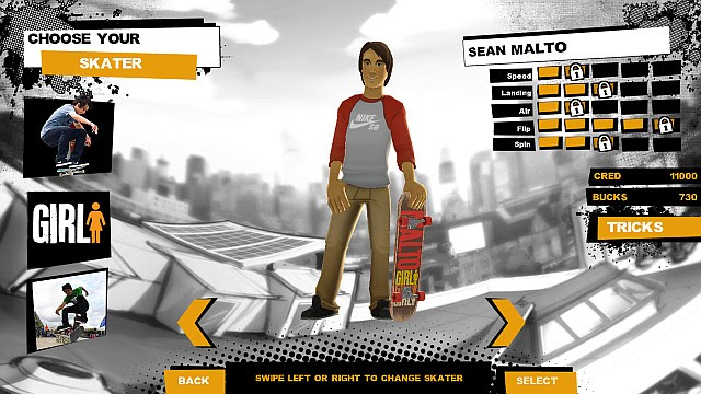 Air it out on ramps, across rails and even over the rooftops! Choose from five of the top professionals to ever set foot on a skateboard and jump into endless levels that challenge you to get as far as you can, or score as many points as you can. Discover dozens of tricks and combos - including secret, hidden signature tricks. Go for huge air, long grinds, and big flips! But watch out ... you can also take some huge spills!